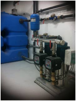 Les réservoirs tampon de 500 à 2000 litres, répondant à des débits de fonctionnement plus importants, sont dissociés du groupe pompes pour permettre une intégration dans des locaux exigus.